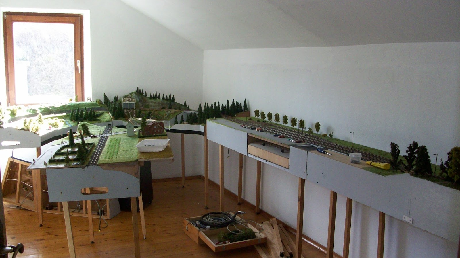 Im ersten Stock wird es wieder die H0-Anlage geben, die dann durch 4 Räume geht. Im Erdgeschoss ein Raum für die digitale N-Anlage, die dort aber Platz zum Wachsen hat, eine Küche und wieder ein Raum zum gemütlichen Zusammensitzen.