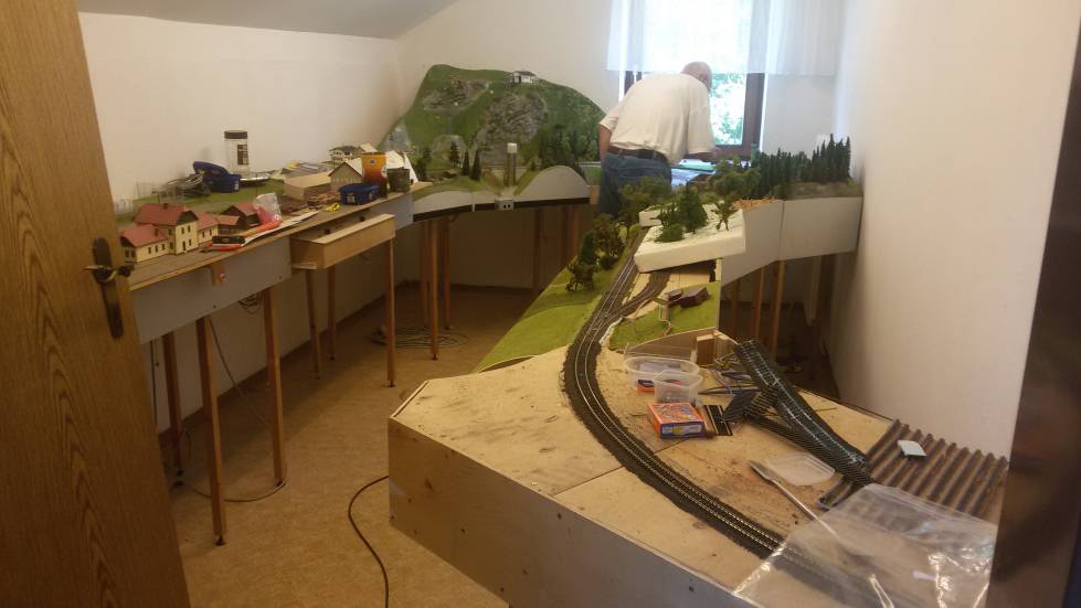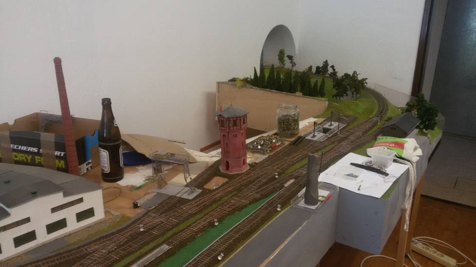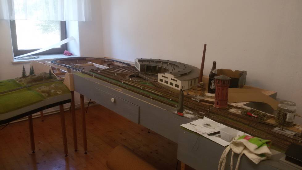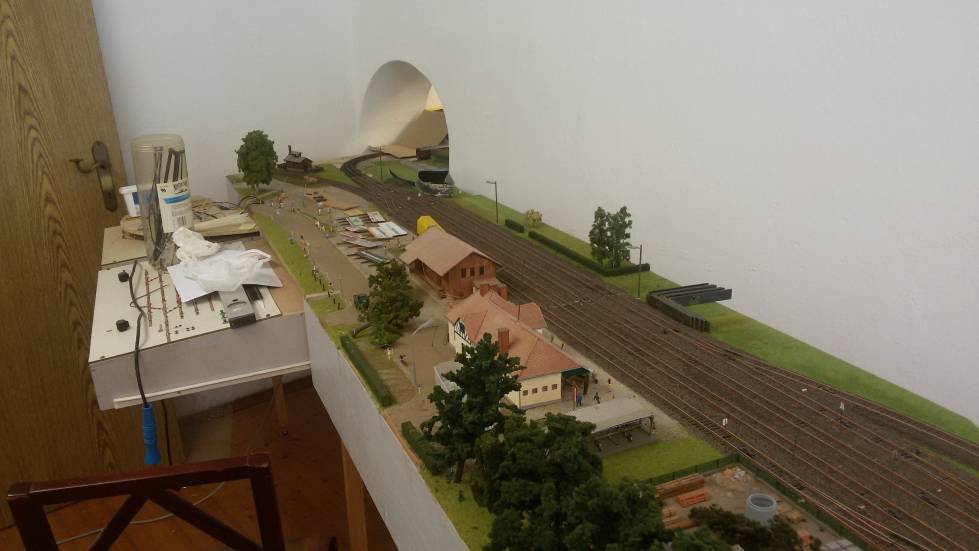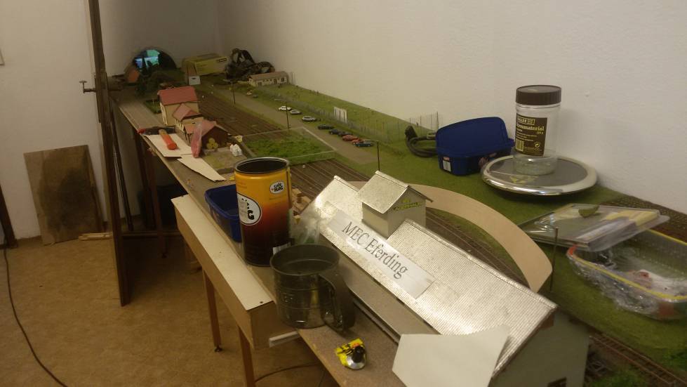 In den letzten 2 Monaten wurden die Gleise auf der H0-Anlage komplett verlegt und geschlossen. Nicht nur die notwendigen neunen Module, sondern auch Modulumbauten, sodass es nun 2 Ausweichstellen gibt.